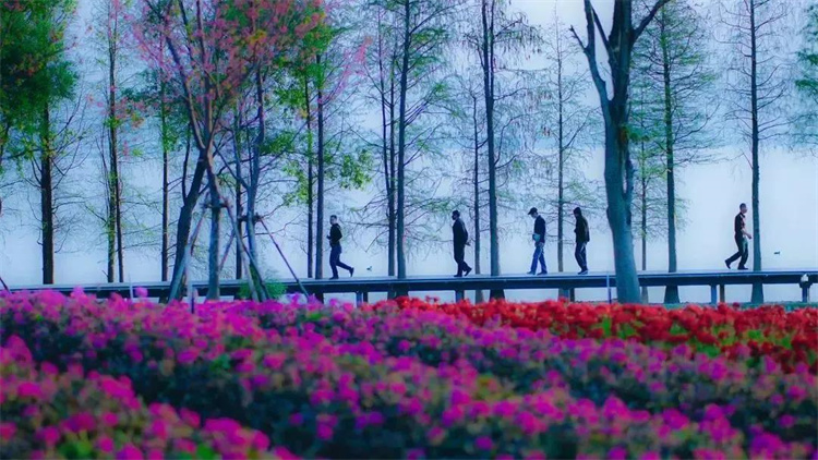 游客和附近的居民在這里騎行、歇息,體驗(yàn)慢時(shí)光