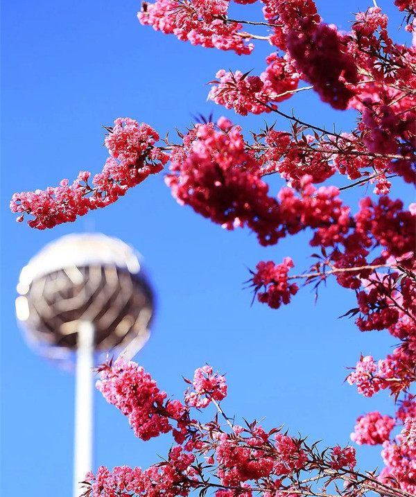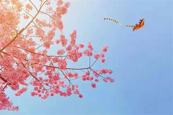 成片的粉色彌漫枝頭