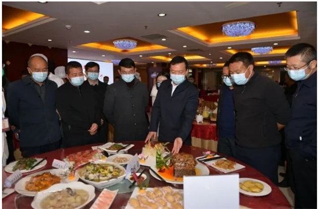 “這道‘天橋掛月’很有創(chuàng)意,實(shí)現(xiàn)了彌渡傳統(tǒng)美食與歷史文化的高度融合”,“你這桌菜的食材價(jià)格在多少?”……彌渡縣縣委書(shū)記舒進(jìn)率領(lǐng)部分縣委常委到大賽現(xiàn)場(chǎng)對(duì)參與決賽的宴席逐一觀評(píng),給參賽選手加油鼓勁。