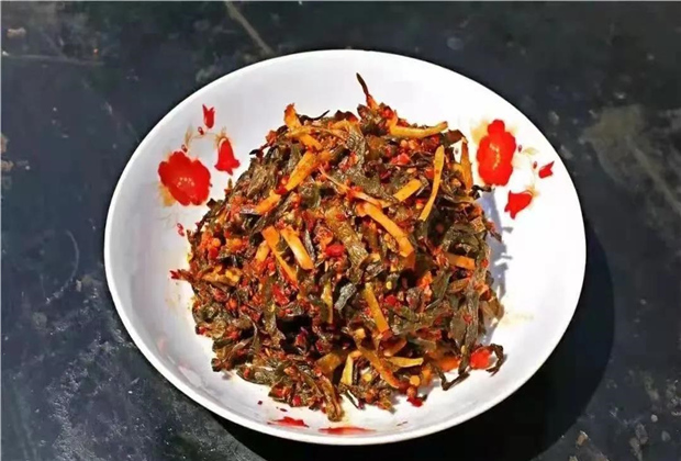 有人概括賓川所謂的“十八怪”,其中有“出外愛帶酸腌菜”這一“怪”。韭菜腌菜是賓川獨(dú)有的特產(chǎn),色澤金黃,聞著刺鼻,吃著爽口,可以單獨(dú)食用,也可作為炒菜中的輔料,特別適合炒肉和煮魚。