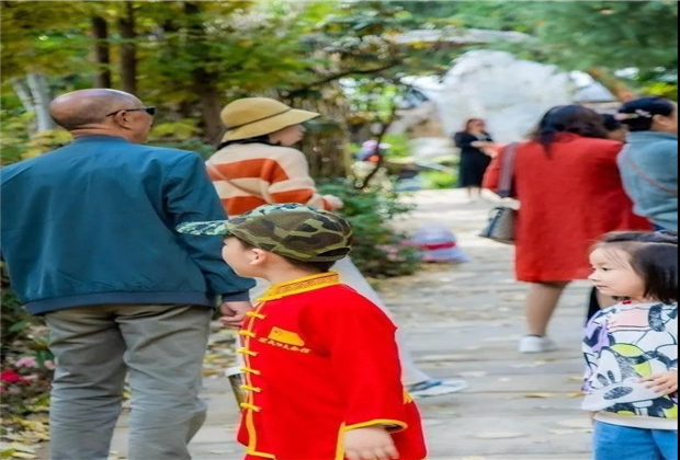 漫步在園中的小路上,欣賞著園內(nèi)的美景,給小朋友講述園中花花草草的故事,讓他們了解更多的植物。