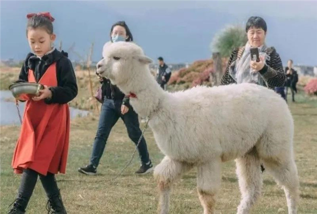 也可以帶上小朋友,來一場野餐露營,或者與羊駝?chuàng)肀?、拍照,親密接觸,讓小朋友親近自然。