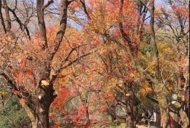 進入寒冬,鶴慶西龍?zhí)兜暮蠚g、黃連木等上百株古樹迎來了最美的時刻,色彩斑斕的樹葉像是畫家筆下的調(diào)色板,風吹過,彩葉緩緩落地,鋪下一地燦爛,成了冬日里一抹獨特的風景。