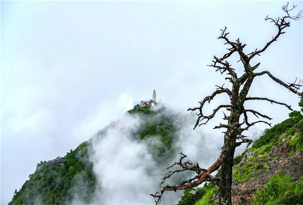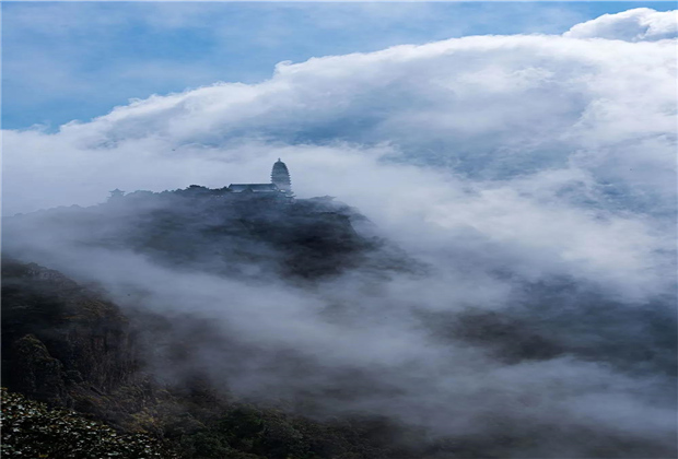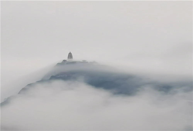蒙蒙細(xì)雨下,青翠蔥蘢的雞足山云霧繚繞,或輕飄漫舞,或怒濤排空,仙氣氤氳,霧在山中游,山在霧中行,儼然一副潑墨山水畫(huà)。