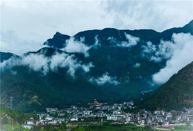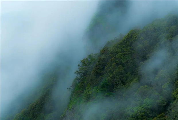 待秋雨初歇,跌巖起伏的山巒若隱若現(xiàn),像極了珠紗遮面的絕世佳人,猶抱琵琶半遮面,神秘且悠遠(yuǎn)。