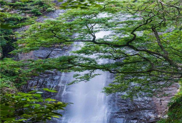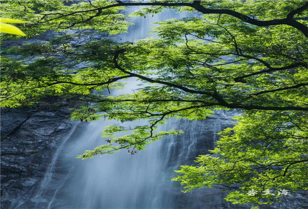 緩步而行,忽然,“嘩嘩嘩”的流水聲在耳畔響起,目之所及,瀑布爭(zhēng)流,泉水清澈,急如飛珠碎玉,甚是壯觀。