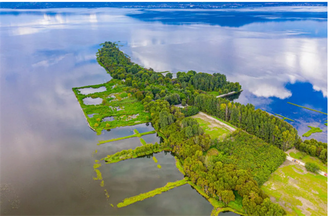 藍(lán)天、白云、樹林、濕地、漁船......各種元素繪成了一幅絕美的山水畫,讓人流連忘返!