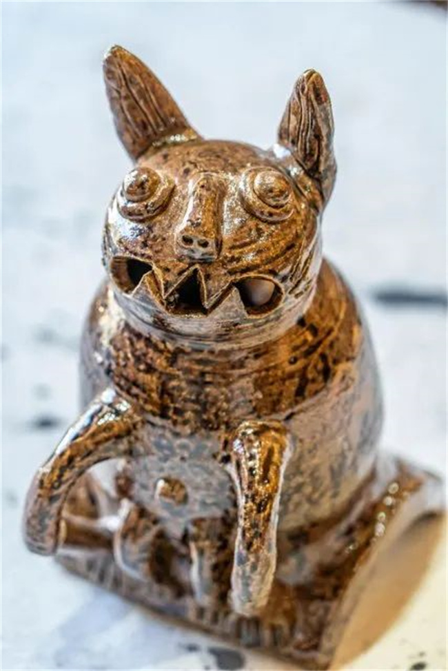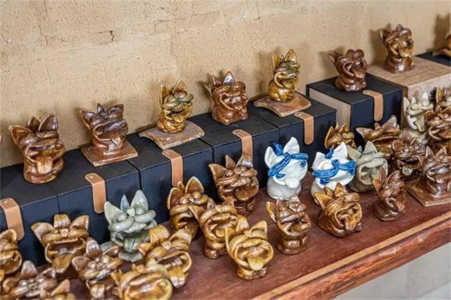 一套套流光溢彩的茶具,一排排憨態(tài)可掬的瓦貓,一個(gè)個(gè)造型獨(dú)特的獨(dú)角獸,在陽光下看去,顏色如漸變一般深淺不一,散發(fā)出金屬般的光澤,喜歡就去鳳儀鎮(zhèn)敬天村收藏一只吧!