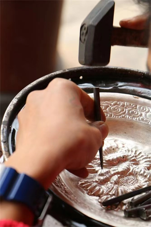 銀器,伴隨著中華歷史文化發(fā)展,千年流光而不衰,而鶴慶新華村手工打造的銀器尤為盛名?!爸袊y器看云南,云南銀器看新華”,小錘敲過一千年,敲出了聲名遠揚的新華村,鍛造出了享譽中外的銀制品?!苞Q慶匠人”手中的那把小錘,叩響了云南銀器的歷史之門,敲出了鶴慶銀器文化的璀璨回音。