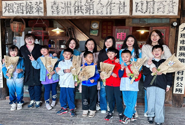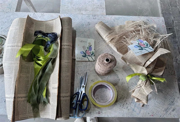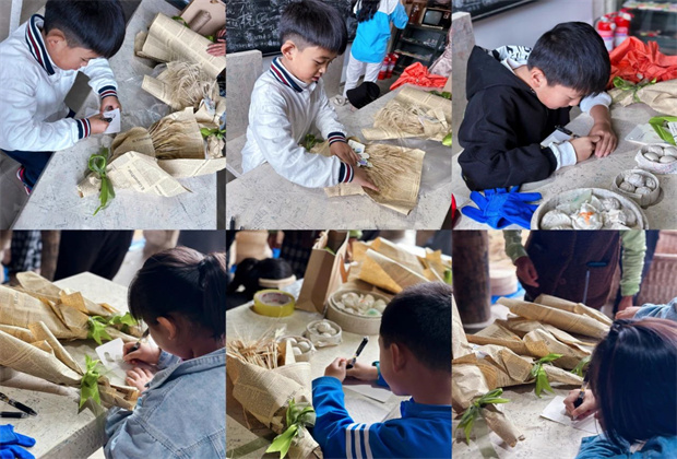 大家把收集好的麥穗整理包扎成花束,并用心寫下專屬于媽媽的節(jié)日祝福。