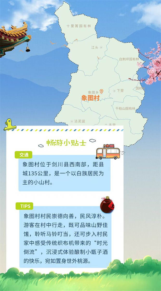 村內(nèi)古水井、古戲臺、古照壁、古民居、古道、古樹一應(yīng)俱全。象圖村人講白語,多以種植業(yè)和養(yǎng)殖業(yè)為生,村內(nèi)婦女擅長用傳統(tǒng)織布機(jī)手工織布、用小甑子釀制大麥酒,并以此聲名遠(yuǎn)揚(yáng),被稱為“云南省內(nèi)山上白族第一村”。