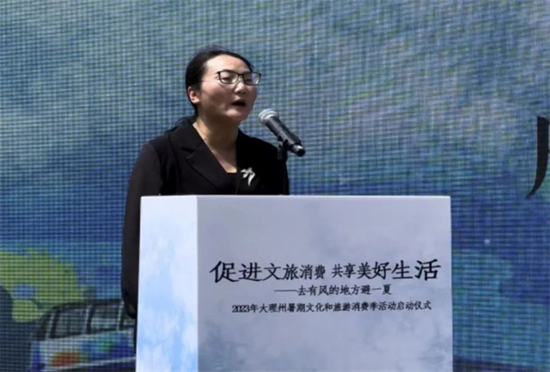 大理州文化和旅游局黨組成員、副局長周麗玲宣布2023年大理州暑期文化和旅游消費(fèi)季活動啟動。