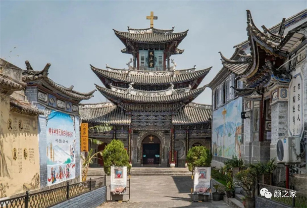 大理古城有一座中西結(jié)合式教堂,教堂主體外觀是白族建筑特色,內(nèi)部則是西歐教堂的風格。