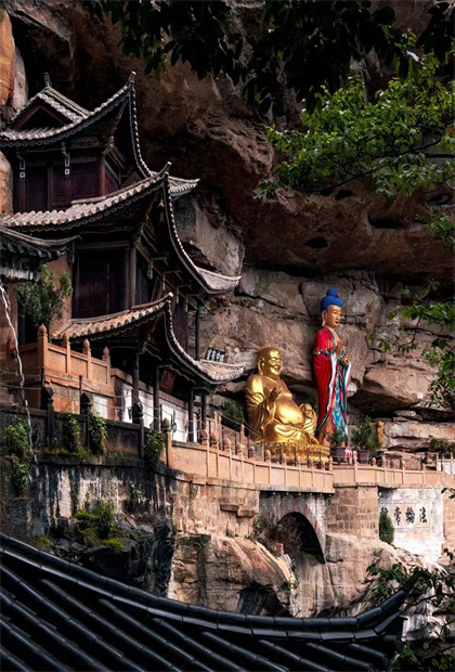 寶相寺是一座建在懸崖上的寺廟,位于石鐘寺景區(qū)外面。