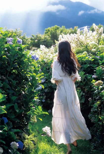 - 穿上白色或淺色系的服裝,與藍(lán)天白云和鮮花綠植相得益彰。