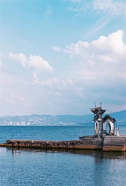 “廊橋”坐落于大理市灣橋鎮(zhèn)向陽溪村的洱海之濱是一座獨(dú)特的水渠其造型如同拱橋一般延伸進(jìn)碧藍(lán)的洱海之中在歷史的歲月里它曾是灣橋鎮(zhèn)重要的灌溉抽水渠為這片土地帶來了勃勃生機(jī)如今它已不再承擔(dān)抽水灌溉的功能成為了一個歷史的見證者“廊橋”最引人注目的是其獨(dú)特的構(gòu)造:十幾個半圓形橋洞如拱橋般連在一起一直延伸至洱海深處無論是站在橋上、橋下還是透過橋洞望去都能看到不一樣的風(fēng)景。