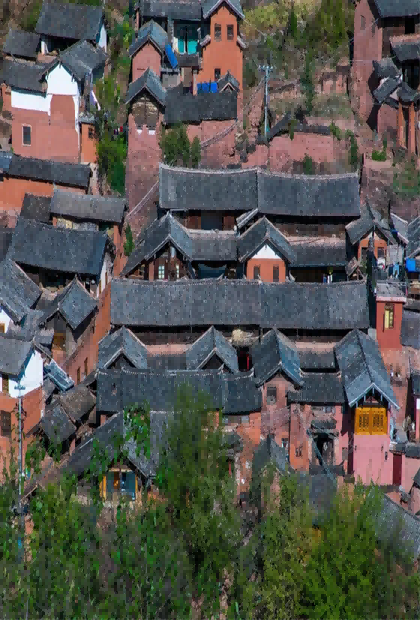 諾鄧古村歷史悠久,保留著大量明清兩朝的建筑,山頂?shù)挠窕书w,始建于明嘉靖年間,是現(xiàn)存罕見的三層閣樓式古建筑。大殿頂?shù)亩诵撬迗D,更為諾鄧一絕。