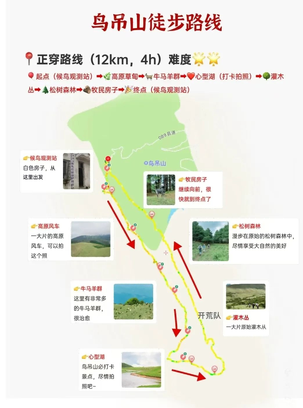 草甸、森林、野花,牛羊、馬匹、山巒,溪水、湖泊、藍(lán)天云霧…還有,野生菌、松子、刺果…它們,裝點(diǎn)了鳥吊山的夏天和秋天,也把徒步、旅游愛好者不遠(yuǎn)千里吸引而來。鳥吊山,位于大理洱源鳳羽壩子西部,屬于云嶺山脈羅坪山的主峰,最高海拔約3400余米。被大家稱為“大理的阿勒泰”,這是一條集高山,草甸,湖泊,溪流,叢林。森林于一體的徒步線路,全程13公里,海拔3242m,走走玩玩大概6個(gè)小時(shí)左右可以往返。因?yàn)轼B類遷徙的時(shí)候容易在山口迷途,古時(shí)有點(diǎn)火引路,但仍有部分候鳥趨光掉落的情況,仿佛追懷同伴,被人們稱為了“鳥吊山”。