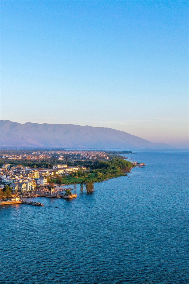 三圣島:遠(yuǎn)處蒼山連綿,近處洱海橫臥;剎那間,山水歸于一途。