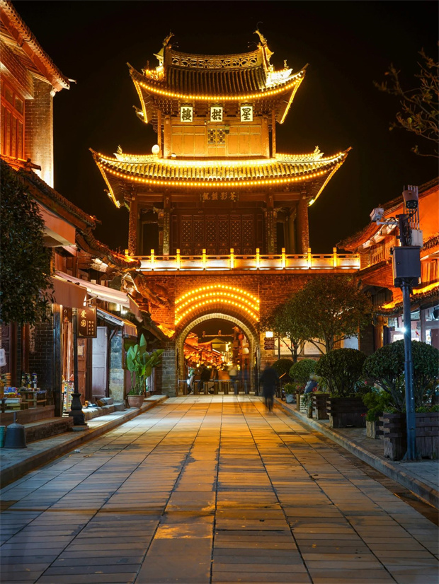 燈光將巍山古城點(diǎn)亮