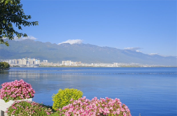 洱海的藍(lán)是調(diào)色盤上的意外——乘一艘船向湖心去,看陽光碎成千萬片銀鱗;騎一輛單車沿生態(tài)廊道追風(fēng),讓衣角沾滿