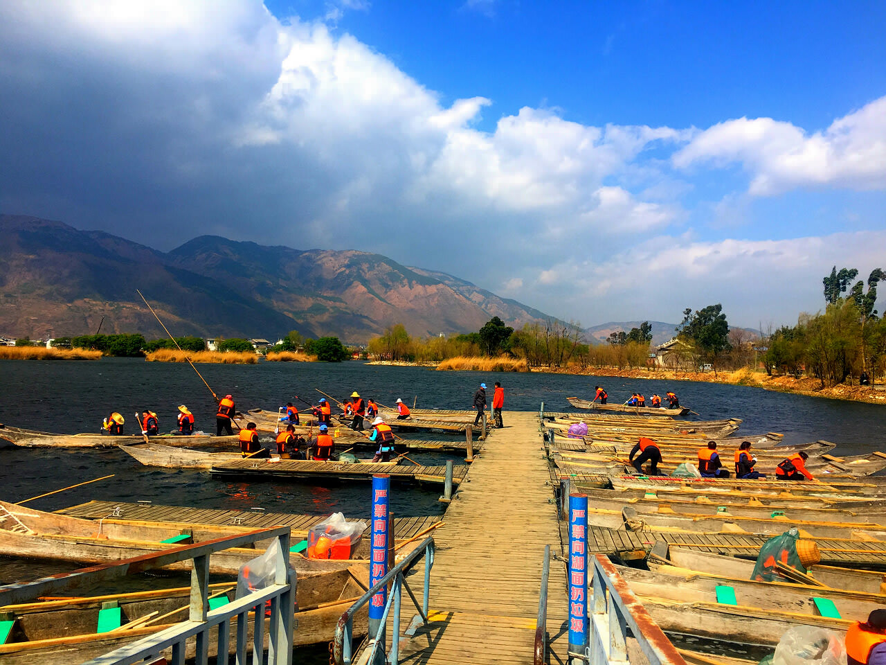 清代鄧川舉人楊承淳賦詩(shī)贊云:“湖光蕩漾幾回紋,漁父歌聲鬧水濱,信口舢敲湘漢句,斷腸弄笛雁鴻云。三三對(duì)白煙蓑合,兩兩歸帆獲岸分,最趁夕陽(yáng)含缺處,前村沽酒帶余醺?!?