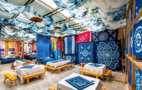 ??我們本次活動會去到“白族扎染之鄉(xiāng)”——周城,跟著白族阿媽手把手的學習扎染:通過紗、線、繩等工具,對織物進行扎、縫、縛、綴、夾,并把自己的布料放入原生態(tài)的植物染料中浸染,上色,拿到完成品。