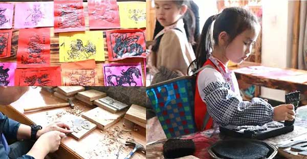 ??“甲馬紙”是一種木刻紙畫,是白族極其珍貴的民間民俗文化遺產。白族人在甲馬紙上拓印動物、山川、建筑、圖騰等畫樣,記錄了他們的生活日常,也承載了白族對于“本主”等神祇的自然崇拜和宗教信仰。了解甲馬拓印方式,學習當?shù)匚幕?,既可以加深孩子們對于大理文化屬性的記憶,也可體味少數(shù)民族文化的獨特傳承方式。
