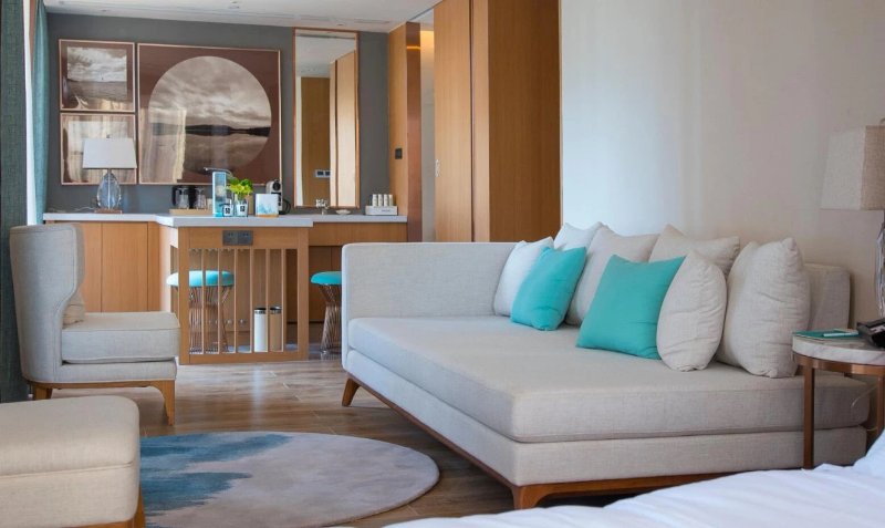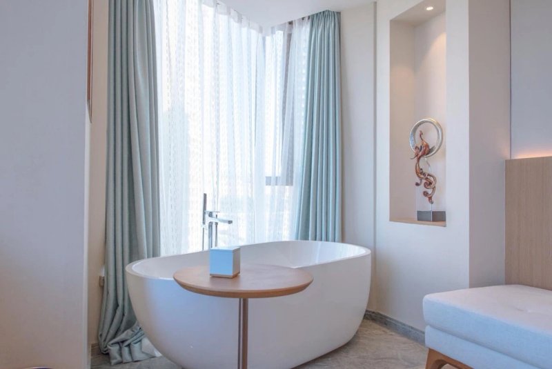 酒店總建筑面積為28500多平方米,高33層,設(shè)有415間(套)海景、家庭、行政客房,西餐廳、6個高檔餐飲包廂等,餐位近1000個。酒店還配有2間多功能會議宴會廳、4間不同規(guī)格的會議廳、1間貴賓接待廳、大堂吧、戶外露臺花園,以及集紅酒雪茄、茶室、書吧等多重功能為一體的頂層會所,集悅SPA、足療、健身中心、娛樂室等為一體的悅云健康生活薈。