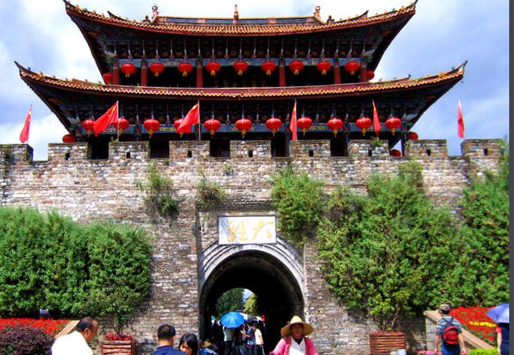 始建于明洪武十五年(1382年),為古城最古老雄偉的建筑,是大理古城的象征和標志。古城墻四面各長約1500米、高6米、厚達12米。城門上“大理”二字是郭沫若1961年游覽大理時親筆所提,“大理”是國號,意為“大治大理,富國興邦”之意。