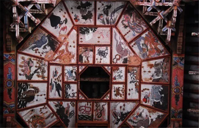 諾鄧玉皇閣始建于明嘉靖年間,是古代著名的道教宮觀。這是云南地區(qū)少見(jiàn)的三層閣樓式道教建筑,大院內(nèi)有明代的梅樹(shù)及翠柏、紫薇、金桂等。大殿頂層上現(xiàn)存的藻井繪畫(huà)“二十八星宿圖”可稱(chēng)為“諾鄧一絕”,對(duì)研究中國(guó)古代天文、藝術(shù)、建筑等方面有一定的參考價(jià)值。