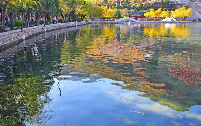 沿著溪流而行,龍?zhí)?、泉眼星羅棋布,如顆顆寶石鑲嵌在鳳凰山下。一汪汪泉眼處,泉水從地下汩汩冒出,小錘敲打銀器的“叮當(dāng)”聲在耳邊緩緩流淌,如琴箏輕撥,如玉珠悄落,與水聲重疊相交。