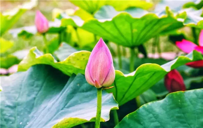 湛藍(lán)蒼穹上,皎潔白云緩緩移動(dòng)。清風(fēng)拂過,片片荷葉如綠波蕩漾,一朵朵次第開放的粉荷,宛若出塵仙子,別有一番“接天蓮葉無窮碧,映日荷花別樣紅”的詩意。