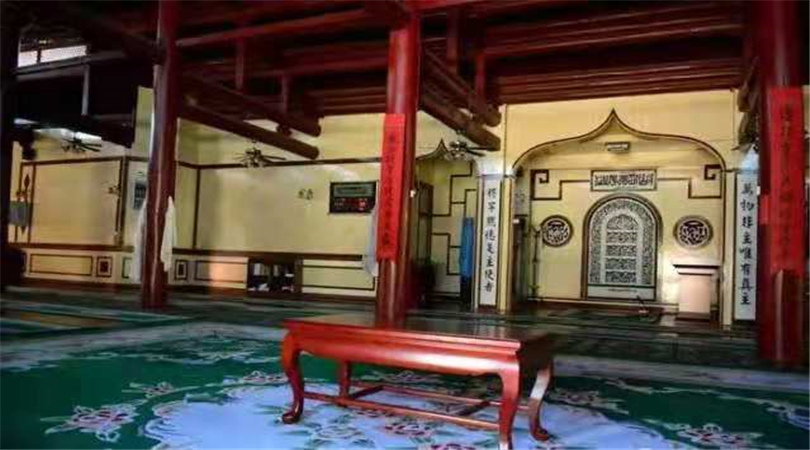 民國十三年臘月竣工的東蓮花清真寺禮拜堂、宣禮樓建筑風(fēng)格獨特,成為歷史文化名村當(dāng)中一道最為莊嚴(yán)肅穆的風(fēng)景線。整個清真寺都是土木結(jié)構(gòu),把中國傳統(tǒng)出閣架斗、雕梁畫棟的建筑風(fēng)格和阿拉伯伊斯蘭美學(xué)觀念完美地結(jié)合在一起,庭院內(nèi)綠樹成蔭,花香飄逸,與東蓮花規(guī)模宏大的古碉樓、古民居建筑群結(jié)合在一起,渾然天成,和諧交融,構(gòu)建起了具有獨特風(fēng)貌的伊斯蘭古村落文化底蘊(yùn)。東蓮花清真寺大殿上,民國十五年陸軍少將楊盛奇提贈的匾牌"誠一不二"至今仍在,從這塊匾牌上可以看出東蓮花回民對民族信仰的虔誠和堅定。