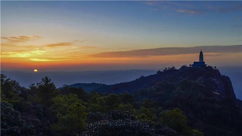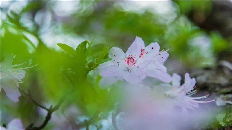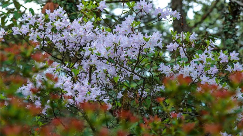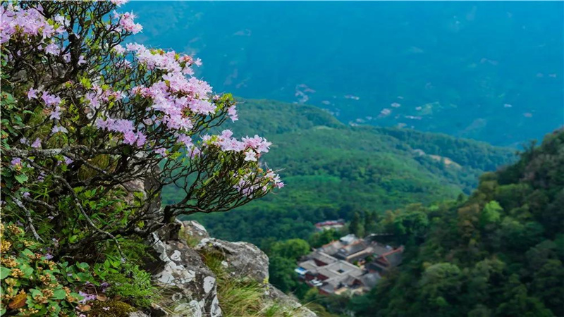 在天柱峰金頂寺東南,一條長數(shù)公里的“杜鵑長廊”,似云蒸霞蔚,連綴成一道亮麗風景線。