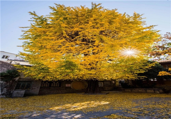 深秋,銀杏金黃,飄落在地,像鋪了一層金黃色的地毯,美極了!