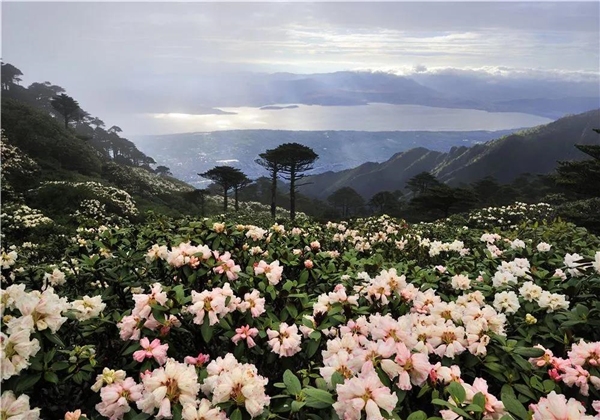 乘坐洗馬潭索道,一路飛云穿霧,近抵山巔之湖,在迎面的杜鵑花海中,醉入這片浪漫,這片熱烈……