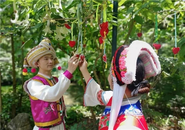 而后,每年的這一天,山花爛漫時(shí),無(wú)數(shù)美麗蝴蝶都會(huì)聚集泉邊,講述動(dòng)人的愛(ài)情故事。霞郎和雯姑跳潭的日期是農(nóng)歷4月15日,也就是有名的“蝴蝶會(huì)”,白族青年的“情人節(jié)”。