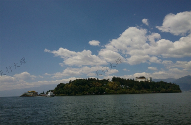 觀音像位于島中央永遠(yuǎn)用慈祥的目光看護(hù)著美麗的洱海。