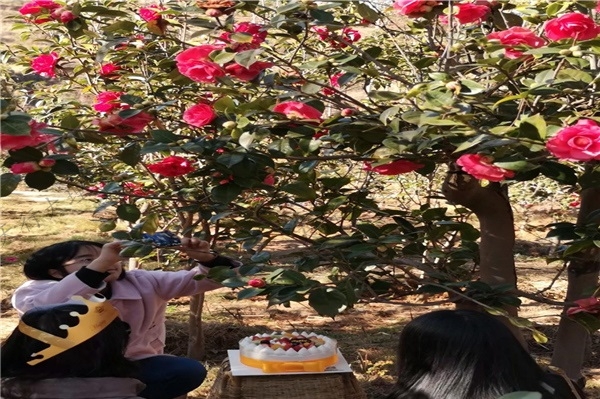 從地石曲村進(jìn)入茶花谷的5公里山路已鋪筑了水泥路面,“茶花谷”“茶花箐”茂密的茶花叢中鋪上了供游人行走的地磚小路,幾間樸實(shí)的垛木房散落在“天上茶花”區(qū)域。“云上花嶺”旁,有驚險(xiǎn)刺激的七彩滑道。玻璃棧道下,是最壯觀的“云上花?!??!肮艠洳杌帧崩?,全都是有著百年以上樹齡的古樹茶花。不僅如此,“十里茶花”“十里櫻花”“十里桃花”相映成趣,冬櫻花、梅花、茶花、云南櫻、鴿子花、杜鵑花一年四季交替開放,漫山遍野都是花的世界。