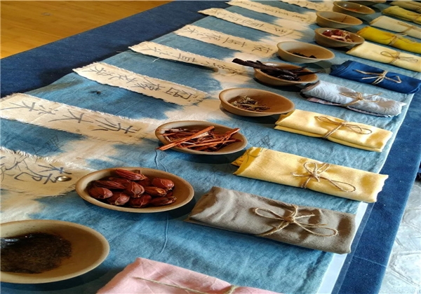 對,藍(lán)續(xù)的扎染,已突破板藍(lán)染,與季節(jié)對應(yīng),成功研發(fā)很多植物染,當(dāng)然,它們的技法,都是傳統(tǒng)的手工染布古法。