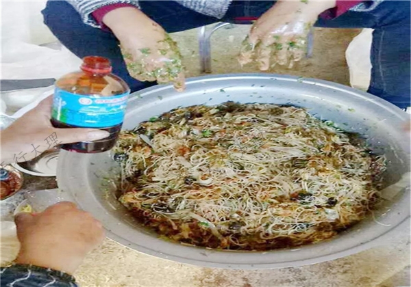 大理人自古熱情好客,請(qǐng)吃殺年豬飯是民間的傳統(tǒng)習(xí)俗,殺年豬時(shí)友人、親戚、鄰里相聚來吃殺年豬飯共享美味和快樂,而“肝生”則是彌渡殺年豬的宴席上最醉人的滋味,彌渡人生生世世難以割舍的鄉(xiāng)愁。