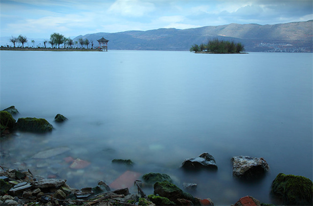 洱海月濕地公園最美的地方就是長滿水草的走廊,還有洱海邊上的石頭灘,在那里拍風(fēng)景特別好看。