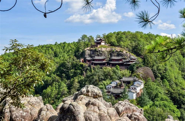 走進石寶山一路上密林遮掩靜謐而深幽古寺就深藏在這片綠色的世界里