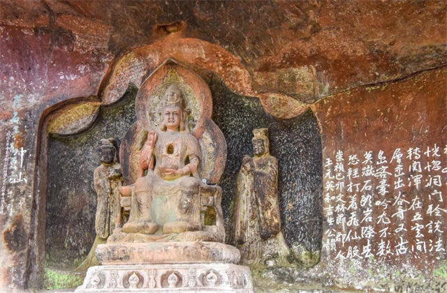 石鐘山石窟石窟雕刻在連綿三平方公里的石鐘寺、獅子關、沙登箐紅砂龜背石上每一座石窟都是一個故事每一處雕刻都是一個烙印對于愛好石窟藝術的游客來說這里簡直就是天堂