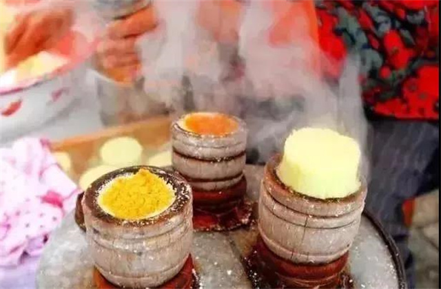 青豆小糕不是每個季節(jié)都有,只有春季蠶豆成熟時才能吃到。蓬松綿軟的小青糕,不僅好吃,還有減肥、養(yǎng)顏的功效。大米與青豆面的混合搭配,口感清香,甜而不膩。