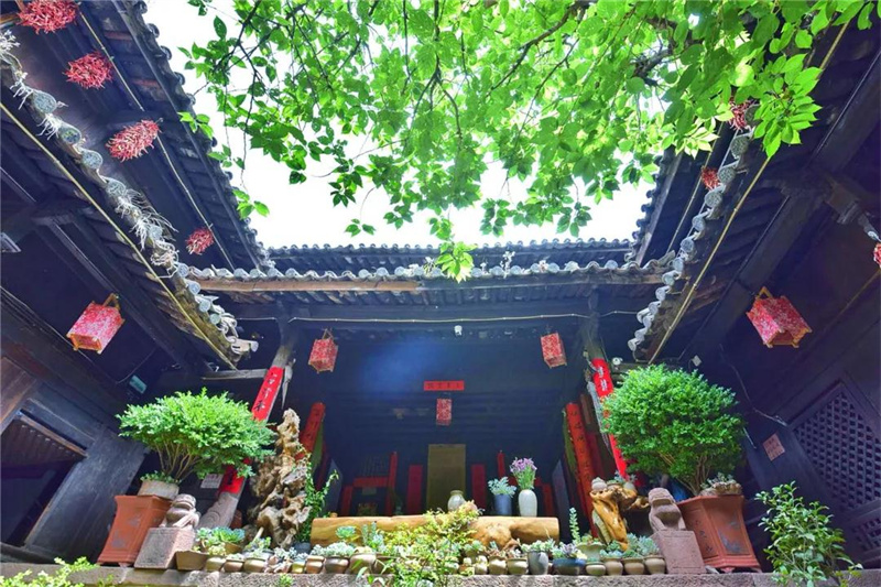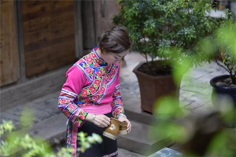 坐在大青樹小院里,圍著小木桌喝藥茶,有薄荷的清新,葛根的回味。正前面一個(gè)半圓型水缸,滿滿一缸水靜靜倒映著屋檐的瓦色。身后是一人多高的屋檐臺(tái),上面斜倚著一把躺椅,陽(yáng)光懶洋洋地堆疊在上面,那一坐,仿佛閉上眼就能恍然入夢(mèng)。