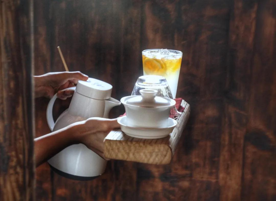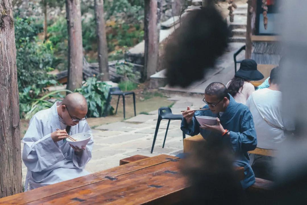 遠(yuǎn)道而來的人們可以吃上一碗美味的素齋,還可以免費喝一杯清茶。
