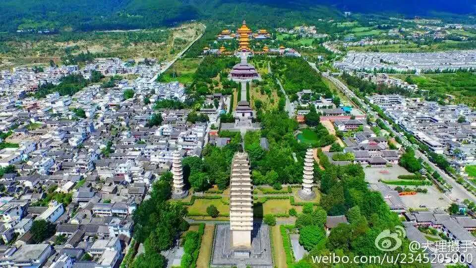 從崇圣寺正面的高空俯瞰整個(gè)崇圣寺三塔,你會(huì)發(fā)現(xiàn)令人震撼的現(xiàn)象:崇圣寺三塔的建筑都呈現(xiàn)對(duì)稱分布!