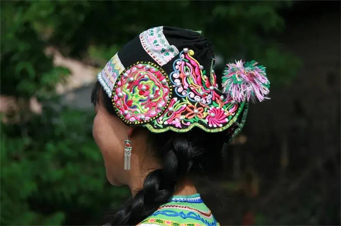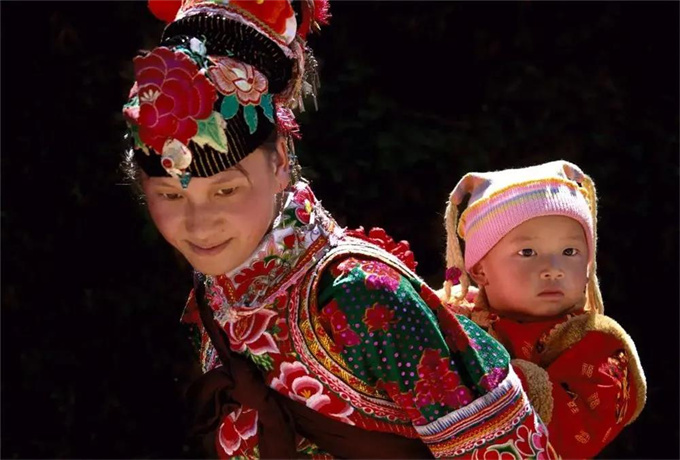 基本款式以黑、紅、藍、綠為主色調,刺繡工藝精湛,圖案變化多樣,飾物靚麗華貴。在東山、大倉一帶的彝族女子服飾中,可見留存的南詔王族遺風。